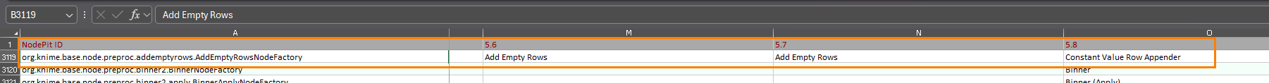 Hi @HaveF , my workflow automates what you showed in your nodepit screenshots - it looks up the name for each node on Nodepit for the different major KNIME versions, using the Nodepit extension. I’m working on refining it a little and then I’ll make it available.