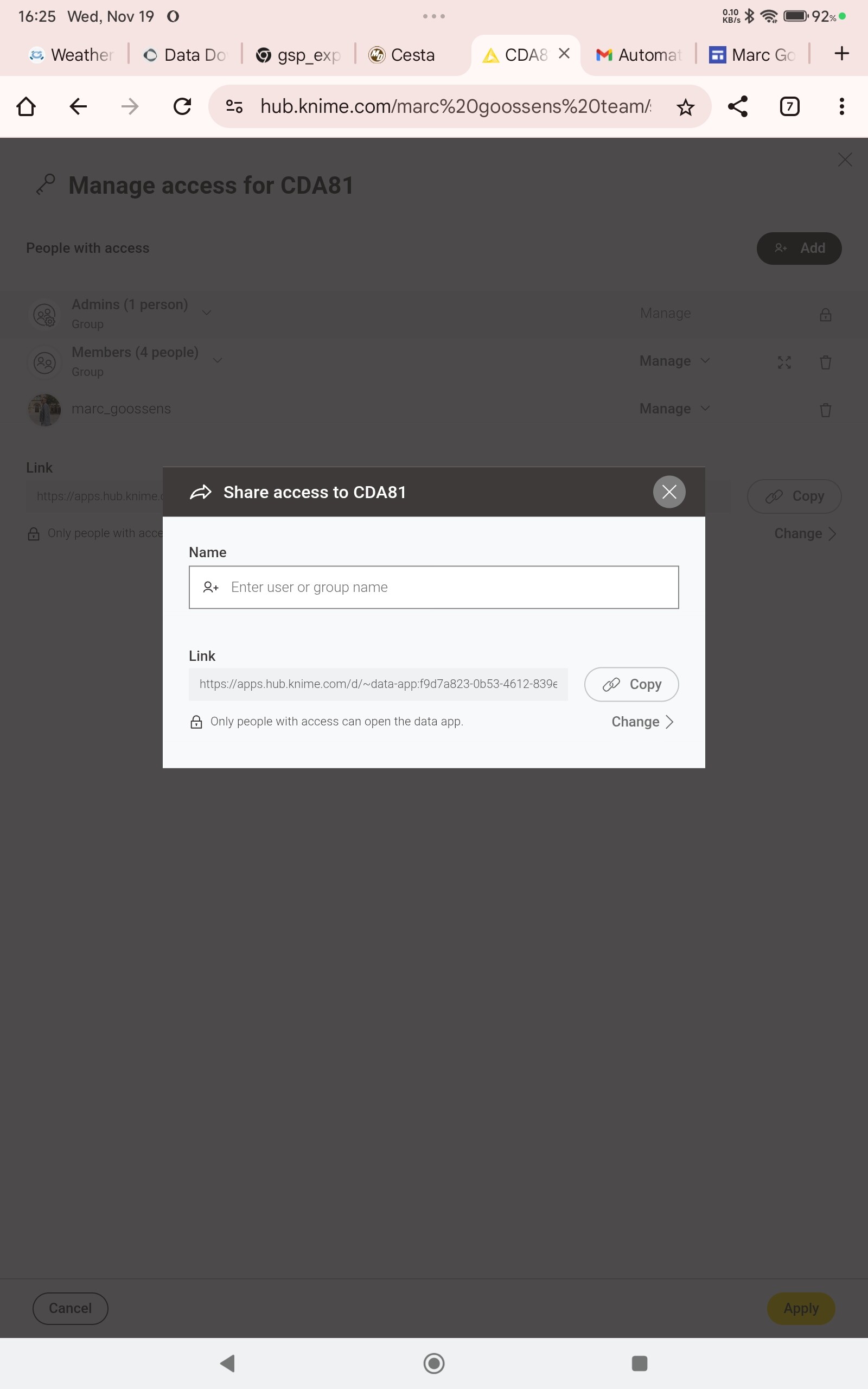 Suppose I have 50 data apps and want to grant access to 20 users for all of them.