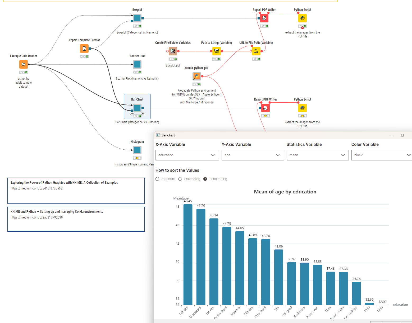 Was ich empfehlen kann ist heute Graphiken mit Python zu erzeugen und dann KNIME als OberflĂ€che der Teile zu nutzen die man flexible Ă€ndern können wird. Das ist einmaliger Aufwand und dann hat man das gewĂŒnschte Chart fertig.