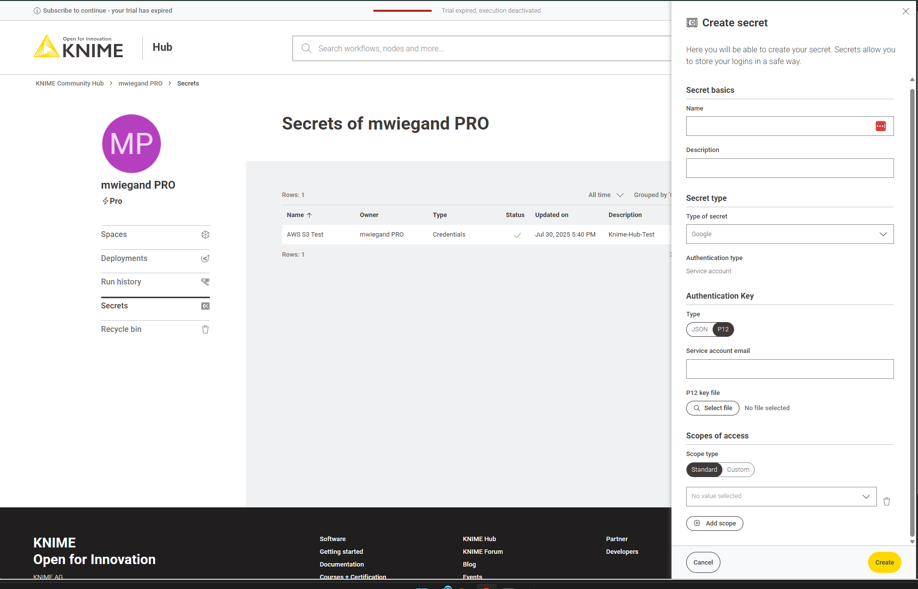 This means their credentials cannot be stored as a KNIME Hub Secret.