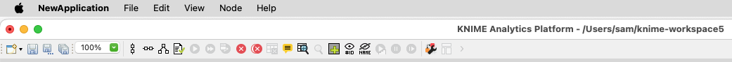 (both the mirror splash screen and NewApplication instead of KNIME in the title bar).