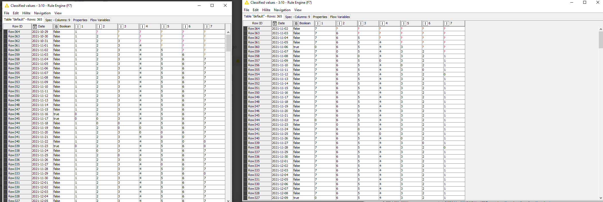 Hi … I use the Lag Column node to create a variable number of columns from an input column that is a boolean 1 or 0. In this example, the lag is 6, but it is based on a variable that adds complexity later in the solution.