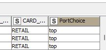 This will assign the value in the first row of the output table of Rule Engine to variables that are named as per the columns of the table - so this way your PortChoice should pick up top or bottom