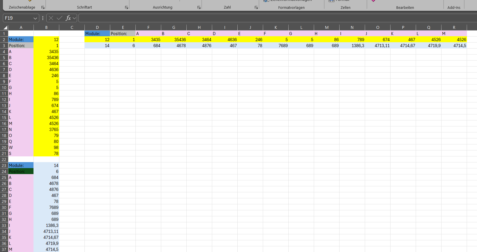 @Esma_Oezdemir hier ist ein Ansatz das zu transformieren. Die Blöcke werden identifiziert (anhand des Begriffs “Module*”) und dann nach und nach abgearbeitet. Die Spalte B dient als Column Header so würde das auch funktionieren wenn das mal mehr als 18 Zeilen sind.