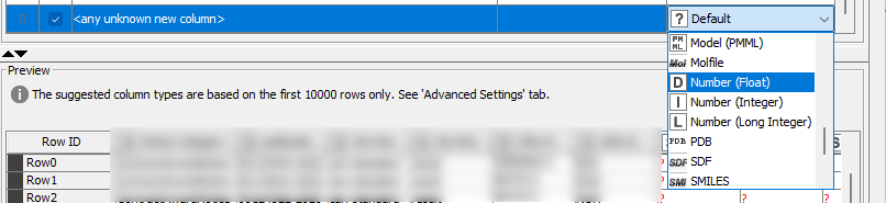 I noticed and inconveniency, actually a problem, when reading a CSV with a column that contains only missing values. No number type can be selected.