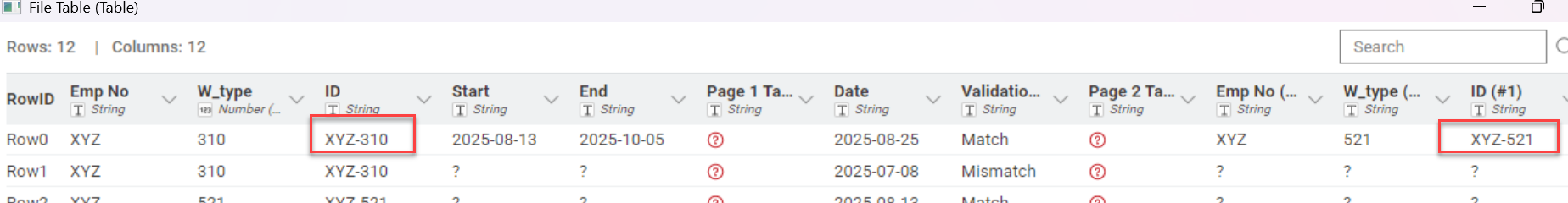 Just a small clarification — the ID has been added in both sheets (Column D in Page 1 and Column E in Page 2). Also, since Page 2 contains only one row, when you join the two sheets using the Joiner node, you would ideally get empty rows for the Page 2 entries during comparison. As a result, mismatches are expected when the data is compared against those empty rows.