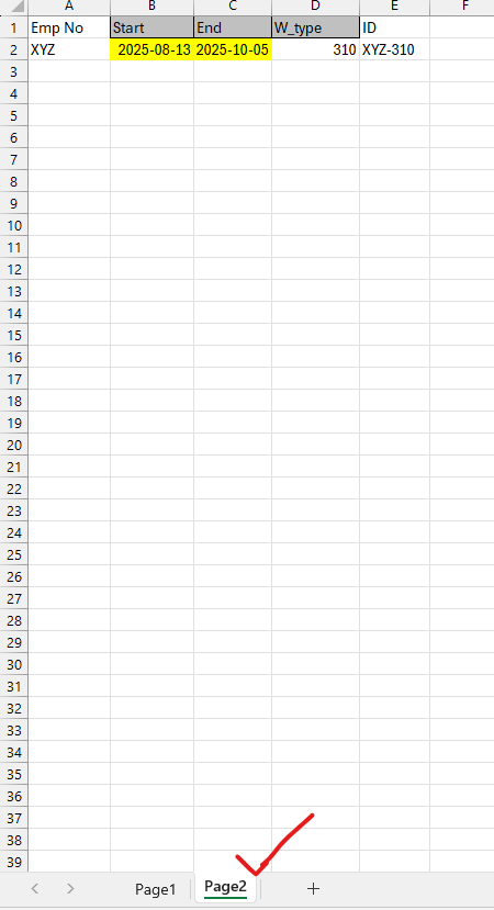 Data Format is like that , we have only one row item in page 2 for each unique ids which consists Start and End date.