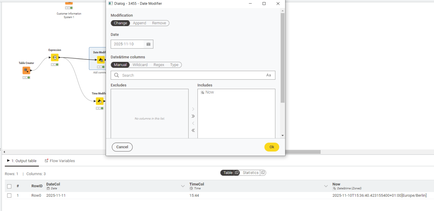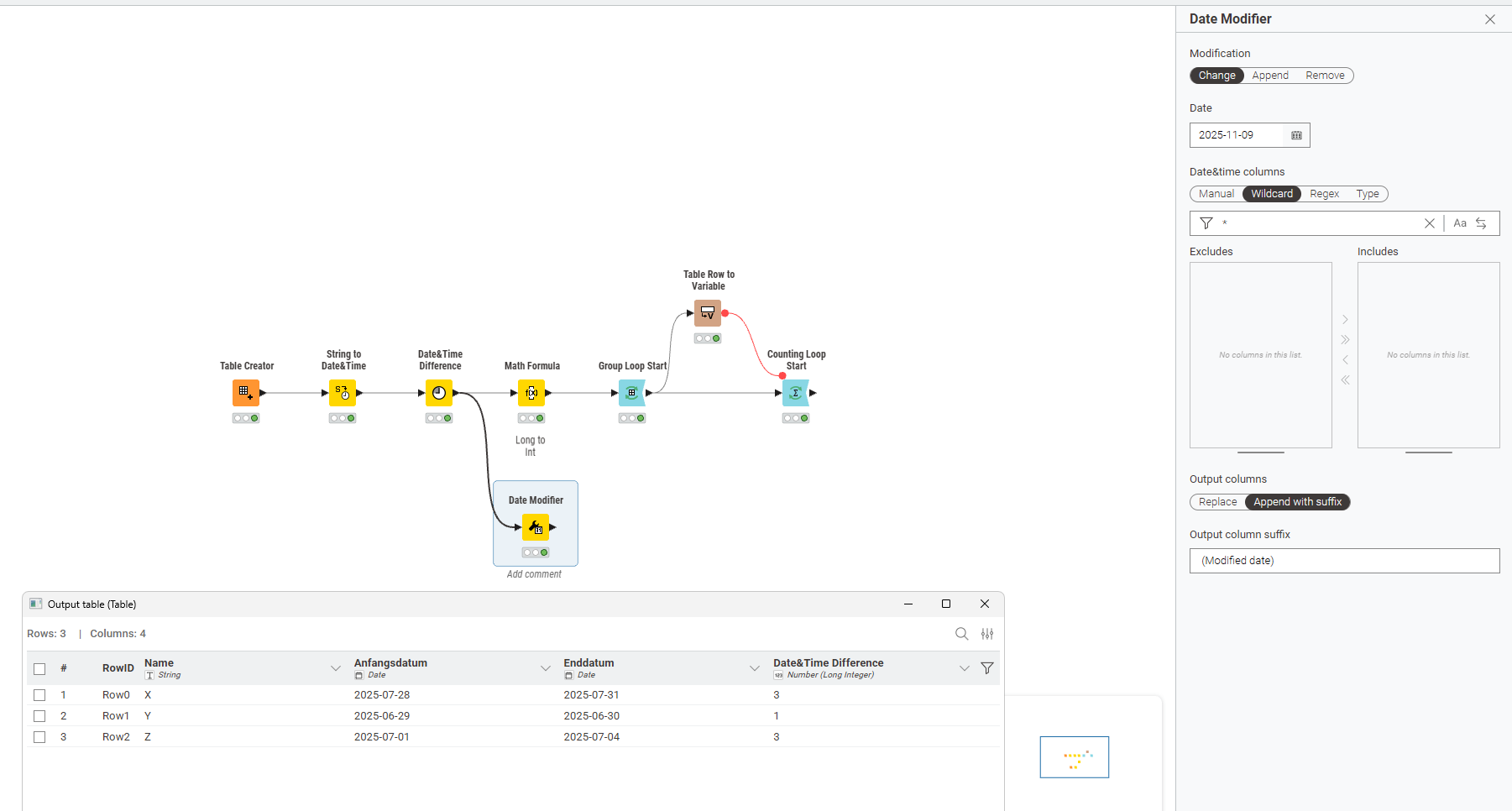 In contrast to the “Date Modifier” the “Date Shifter” does accept date columns. And it’s similar with the time variants.