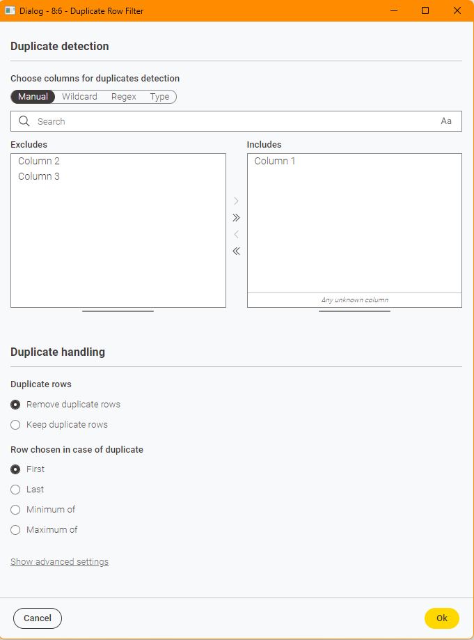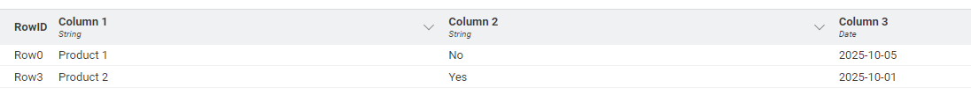 Result of Duplicate Row Filter: