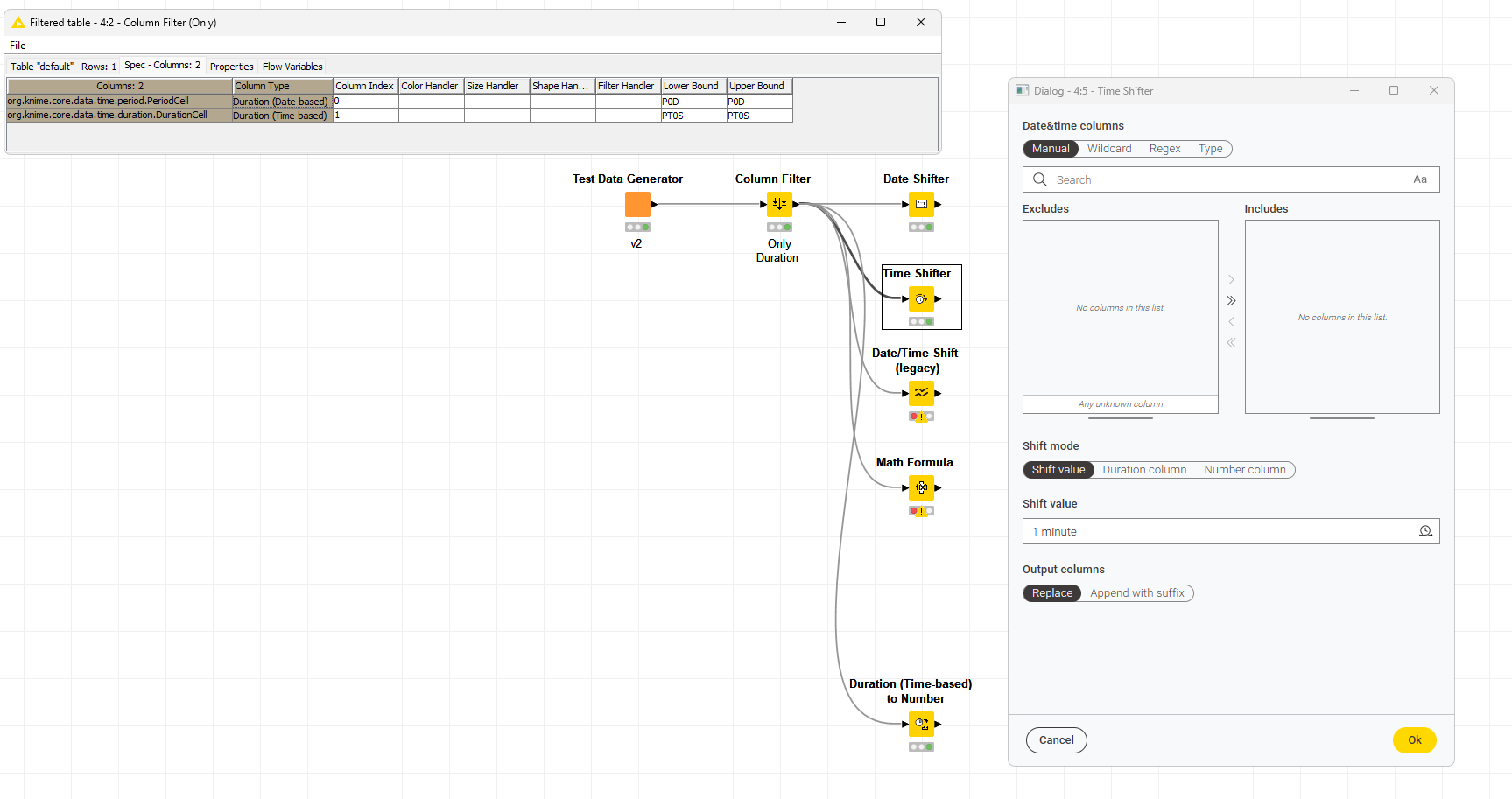 while preparing an example workflow I noticed that the capabilities to modify a duration column, both Duration Date-/ and Time-based, are quite limited. I.e. the Time Shifter states to generally “Shifts time columns by a defined duration or granularity.“