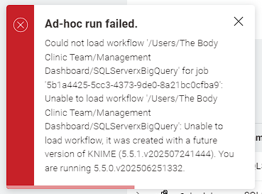 Today, I updated my local KNIME installation as usual, and at the end of the day, I uploaded the workflow.