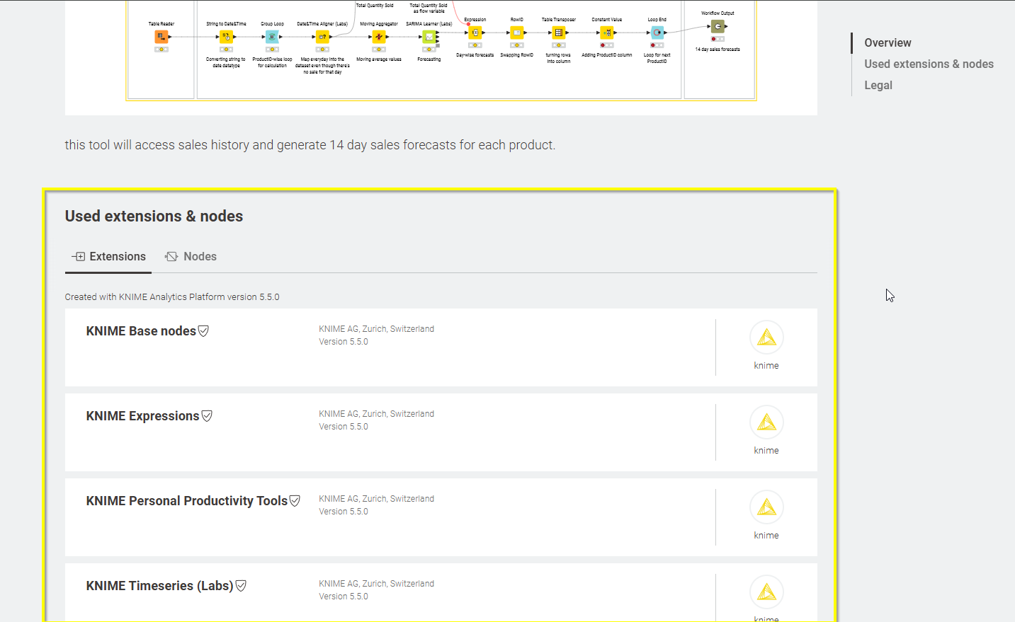 In fact, there is no need to identify required extensions. If you are opening wokflow with ‘missing’ nodes, KNIME informs the user about missing extension and proposes installation. The user’s task is only to read messages and click ‘OK’ buttons. No-code required