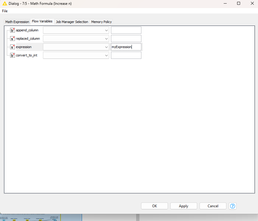 In contrast if you want to use this flow variable in another node then you’ll assign it in the middle column like this in some downstream node: