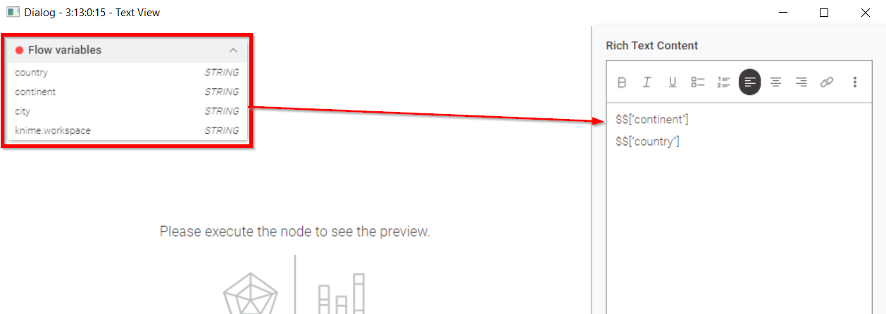 in order to make the usage of flow variables in text view node easier, it would be great to have an input table view for flow variables. So flow variables could be drag&dropped into the Rich Text Content window without the need to remember each and every variable by heart.