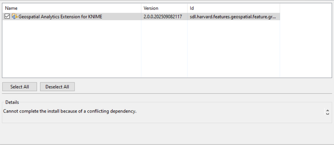 Software being installed: Geospatial Analytics Extension for KNIME 2.0.0.202509082117 (sdl.harvard.features.geospatial.feature.group 2.0.0.202509082117)
