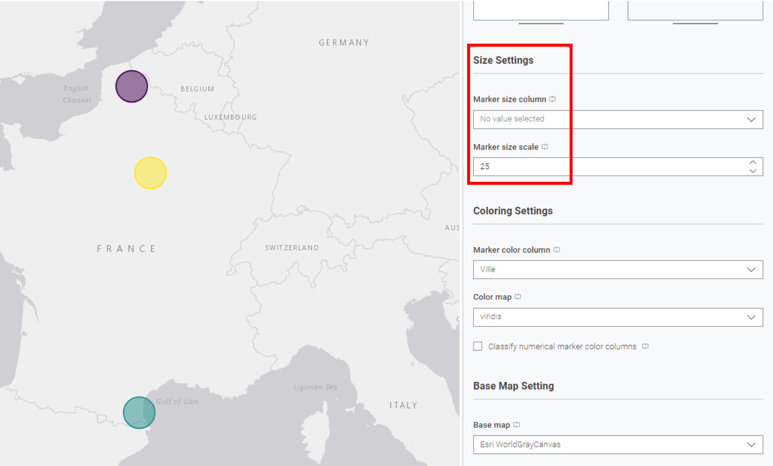 have a very simple file with coordinates: City, Year, LAT / LONG. I want to locate them on the map using Geospatial View. I want all these points to be the same size. I’m trying to deal with market size, I even added a “SIZE” column to help.