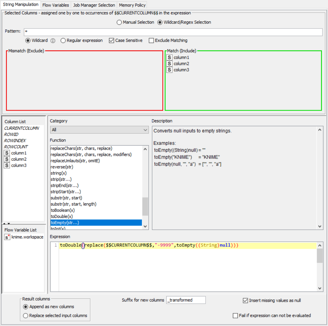 If anyone has seen this behavior or knows the correct configuration to make Column Expressions replace numeric values with missing values, I would be extremely grateful.