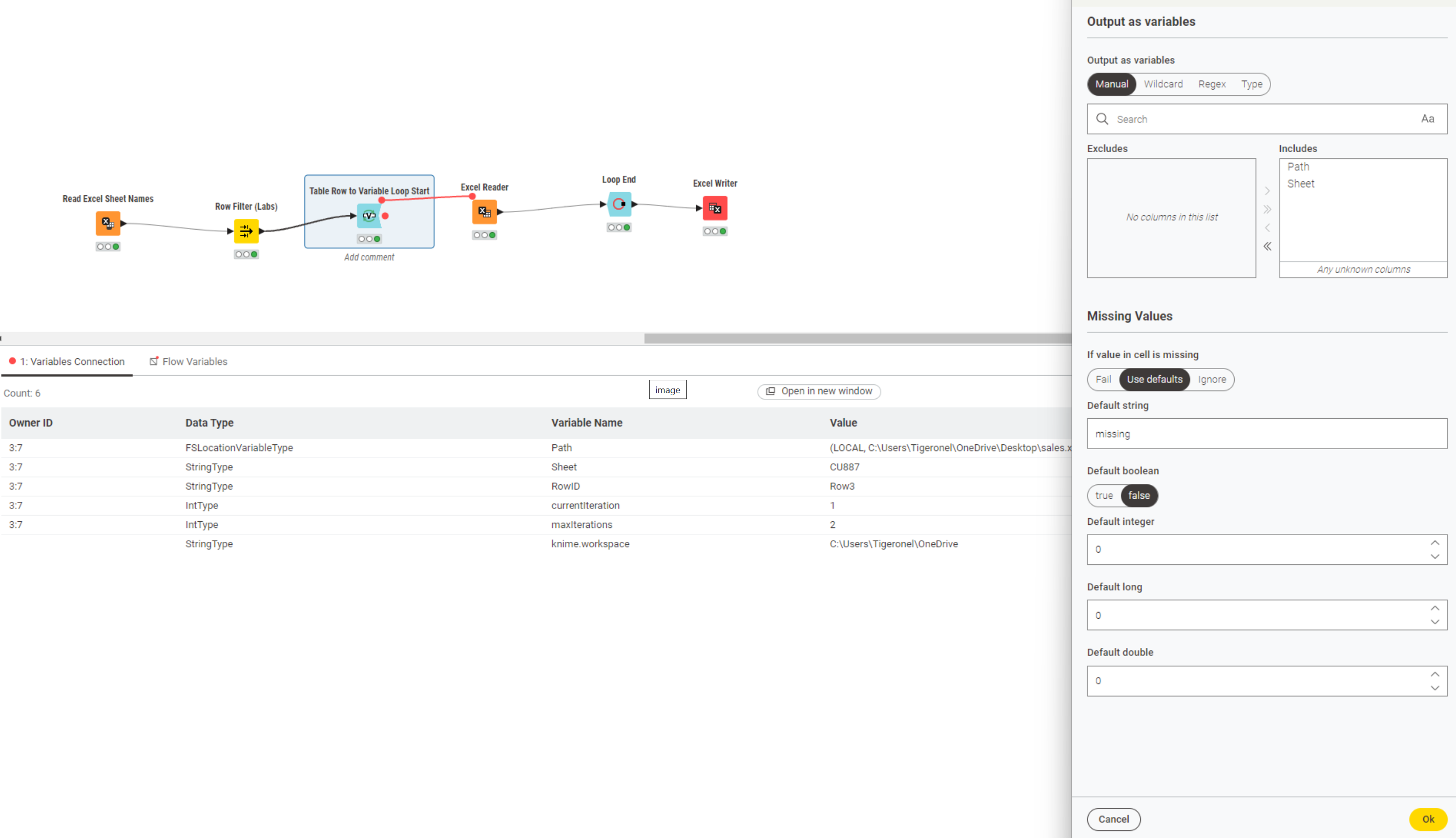 OK @Tigerfox your workflow works properly. It means it doesn’t generate any errors, variable ‘Sheet’ is available, and the result is: