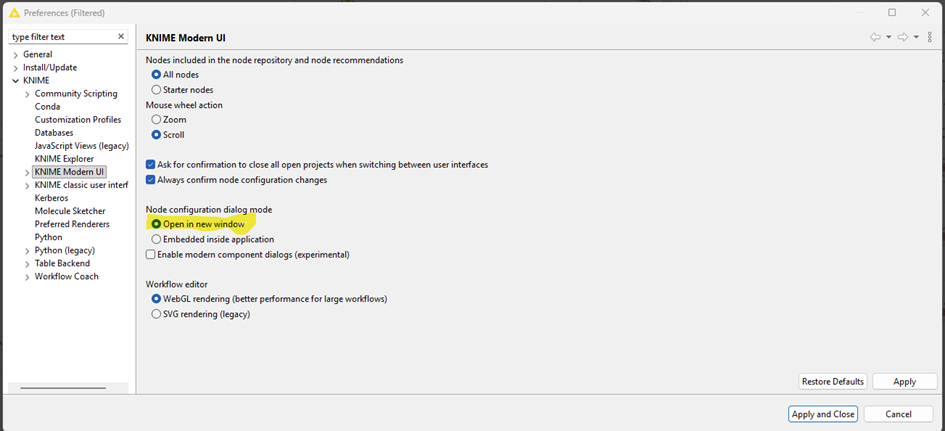 I know we’ve made a lot of improvements to KNIME Hub & KNIME Business Hub, in fact it’s been my life’s work for half a decade now, so I can see where you’re coming from. I believe one important motivation for the UI migration I didn’t see mentioned in this thread is that a lot of new users who are not seasoned pros might find a simpler UI and browser-based editor easier to work with (not web tech embedded in desktop software like what we’re discussing here, but truly browser-based like in Google Chrome or similar). For this we would need to move to web technology and replace a lot of Eclipse-isms (such as modal windows) in order to achieve browser compatibility. Although “KNIME Classic” is something many people in this thread know well and are comfortable with, when I first joined KNIME, I saw fairly common feedback from new users that the software was too complicated or hard to learn. If I’m not mistaken (I hope someone corrects me if I’m wrong), the browser editor, increased whitespace, simpler controls, and suppression of advanced settings were intended at least in part to make the overall UI less intimidating for new users. I’m sure that Femke and everyone else on the design team care quite a lot about making KNIME as functional as possible for users of all experience levels though, so thank you again for all of the feedback.