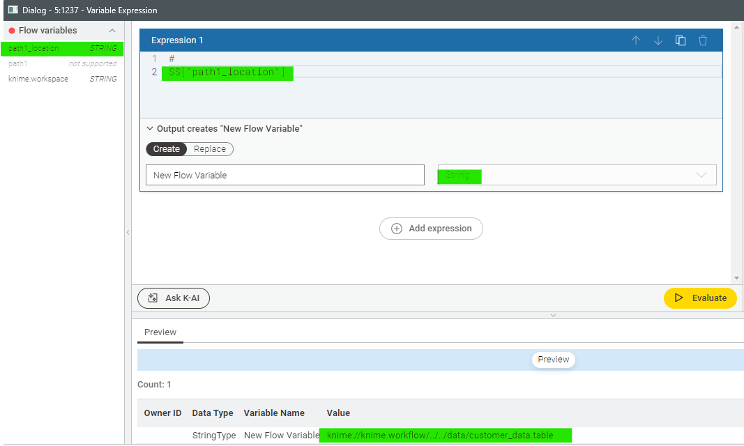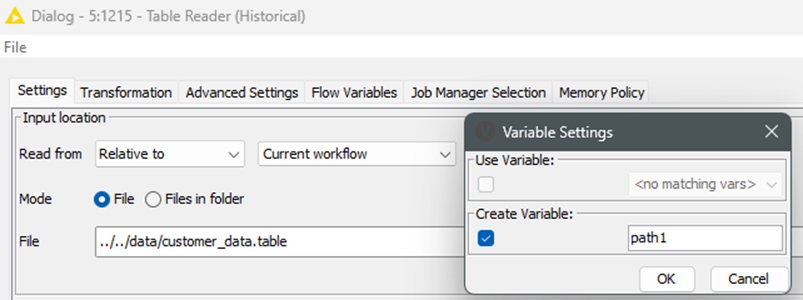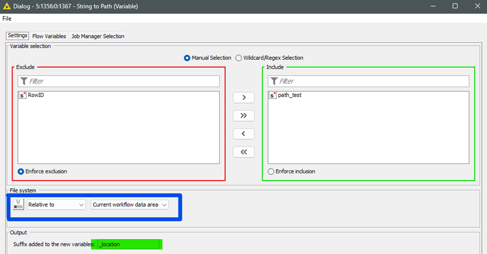 The procedure for editing Path variables is the same, however the format would be just the hanging folder name converted to Path using [ Relative to ] [ Current workflow data area ] conversion, within the ‘String to Path (Variable)’ node