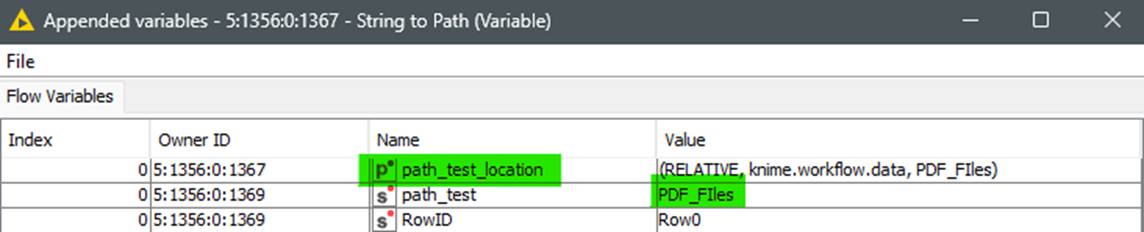 Your string format path is “PDF_Files" It will be transformed to relative by using the right settings within the ‘String to Path (Variable)’ node