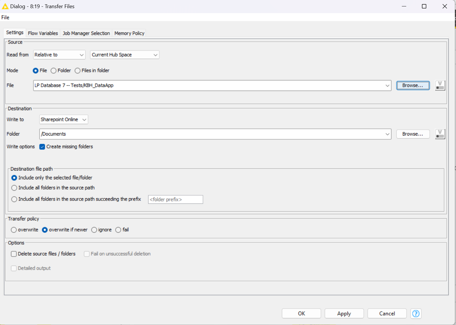I have a data App that outputs a table in the Workflow data area after the app receives an input from the consumer and is refreshed. My goal is to copy the output table of the data app data area to a Sharepoint folder. However, I’m having difficulties accessing the table (in csv format) outputted from the data app to the new Workflow (used to copy the table to the Sharepoint folder by a trigger based deployment).
