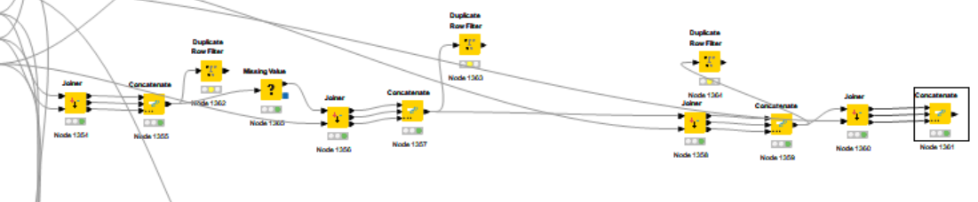 A question… If tyou have some files/tables with the same scheme, you can use a csv/json/file reader node with the folder configuration to load multiples files. This will make a single table with all data that you have.