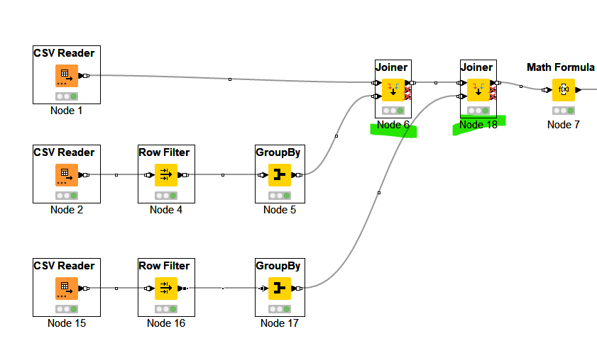 After that, you can use de group node to sum the information or make some calc and at the end, use de row filter and column filter to remove information that you don’t need any more.
