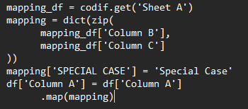 Assume I have mapping_df and df as inputs already.
