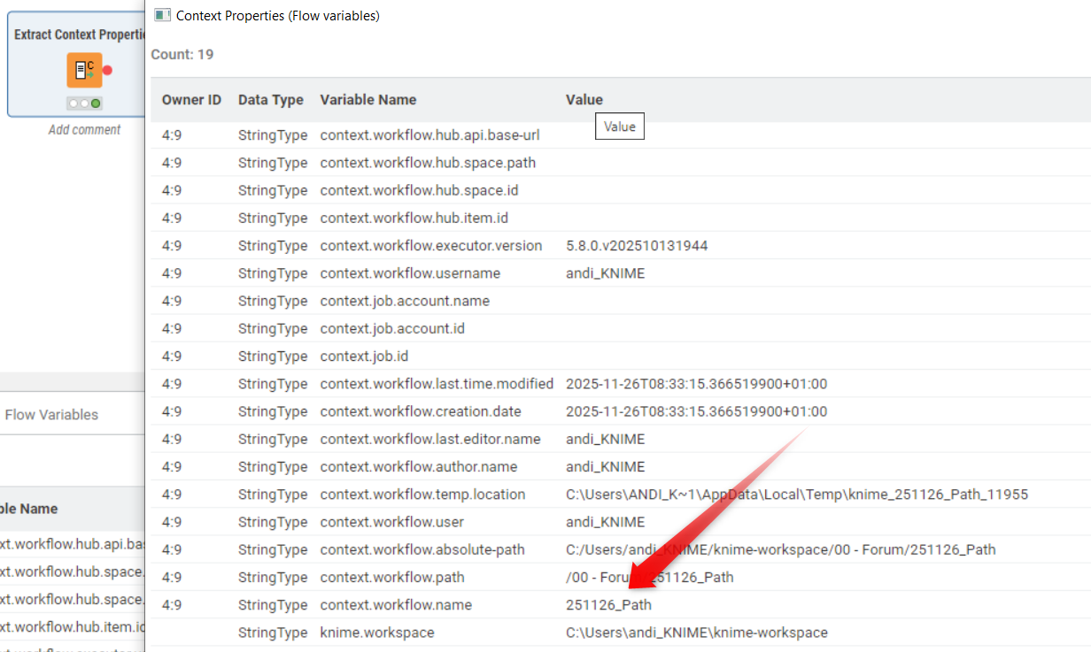 I’m working with KNIME (version 5.4.x) and I have a question regarding workflow metadata access.