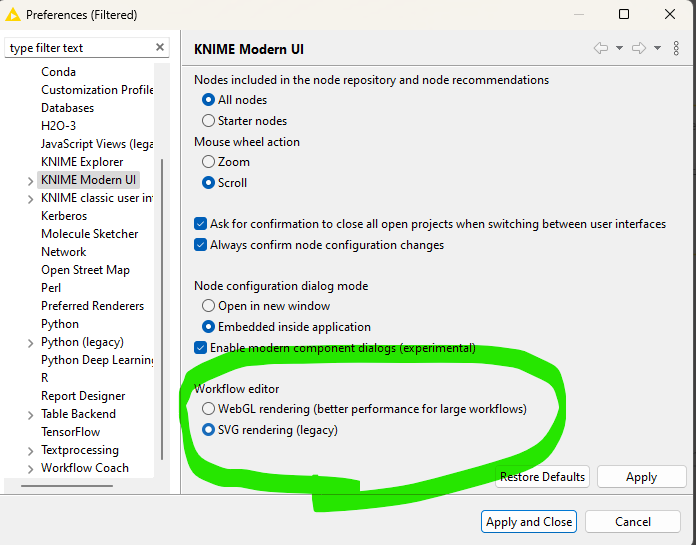 @rfeigel I think the version 5.7 was released somewhat by accident and the (new) default WebGL rendering is not ready. You might have to switch back to KNIME 5.6 unfortunately. 5.7 seems to be due end of September.