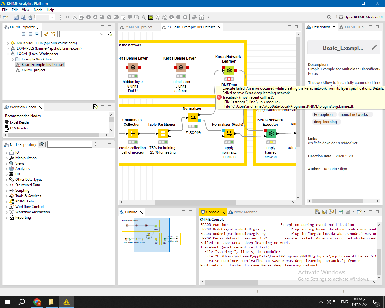 - Keras nodes fail to execute due to TensorFlow / Keras version incompatibility