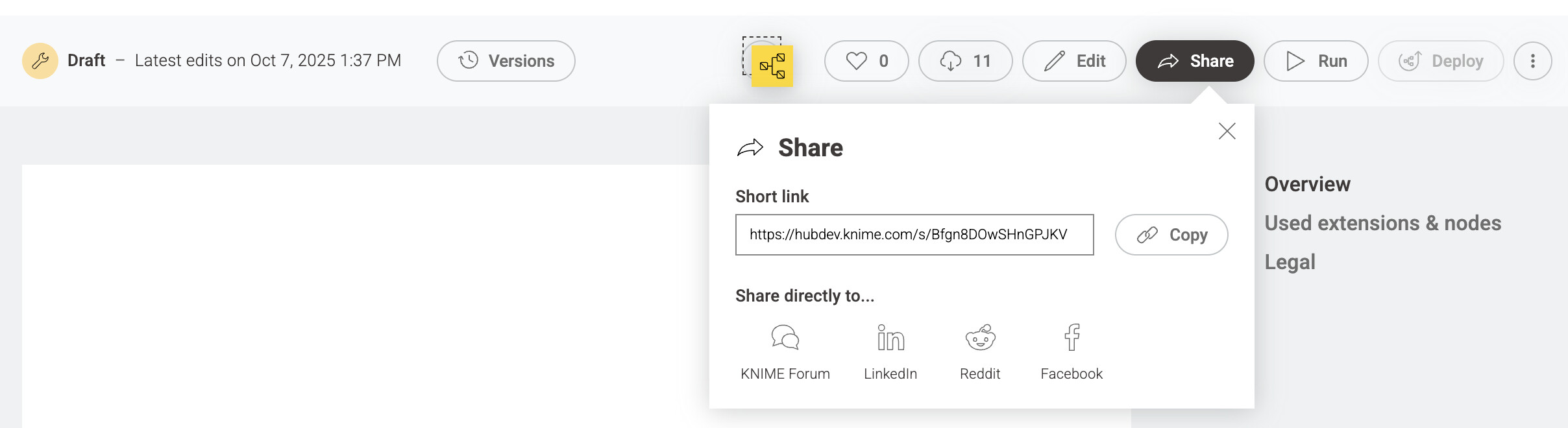 The Knime Hub has apparently been changed. I can’t figure out how to save a link to a workflow in my public space. Here’s what I get.