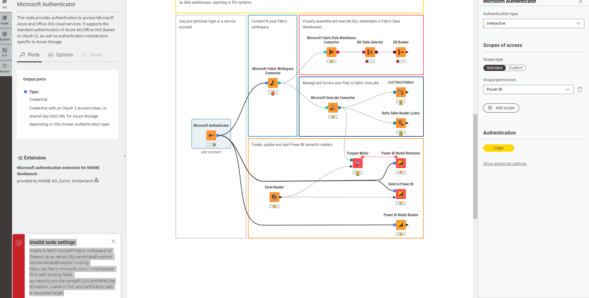i am not sure if i am doing the right configuration to access Fabric, i am getting the following error: