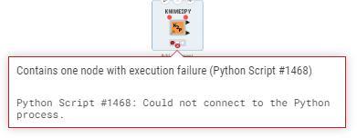 It looks like Python Script node inside KNIME2PY component couldn’t start or handshake with its Python process.