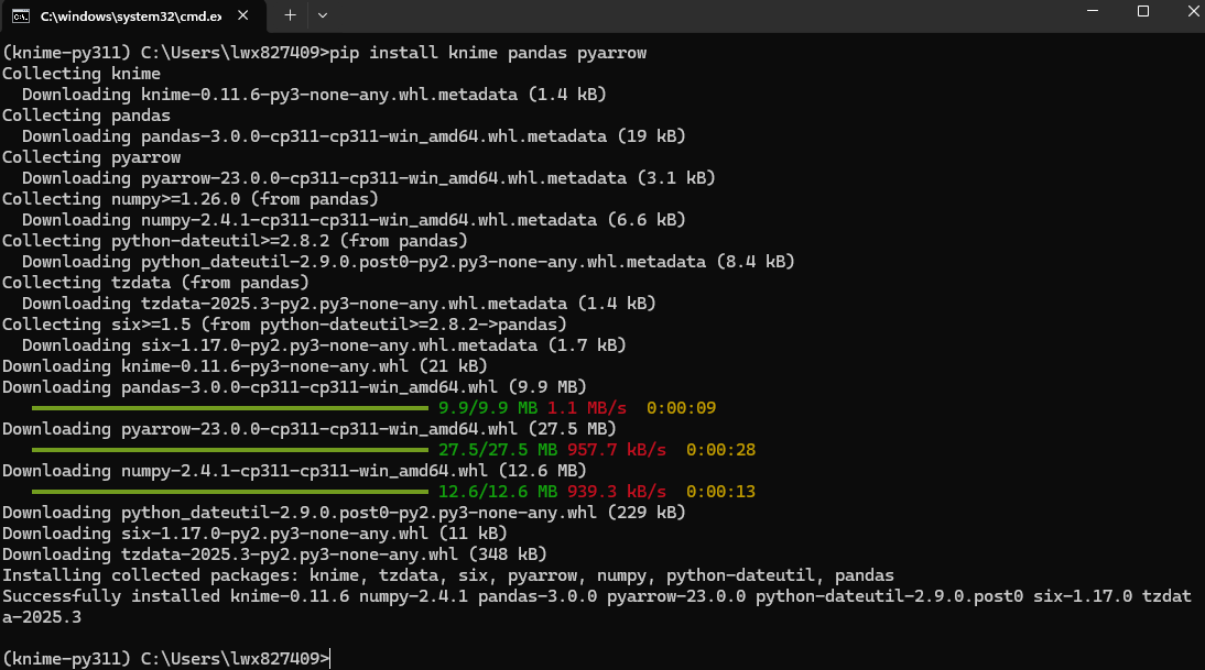 If the problem persists, the workaround is to run KNIME as Administrator and execute KNIME2PY once. On the first run, PEX will create the required links; subsequent runs should work without elevated rights.
