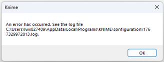 It can be fixed by clearing KNIME’s cached configuration or reinstalling cleanly.