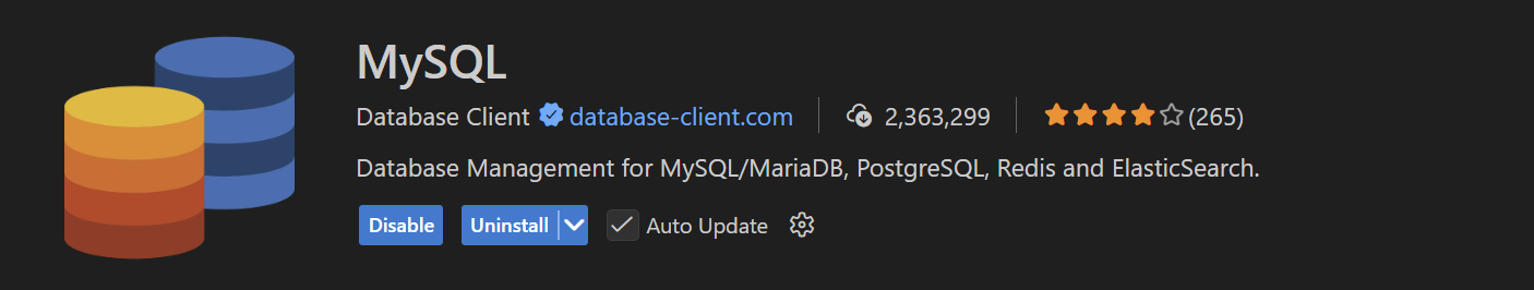 My VS Code doesn’t have too many extensions, basically SQL and one for connecting to a MySQL database that I use to connect to a SingleStore cluster. It includes a Database Client JDBC.