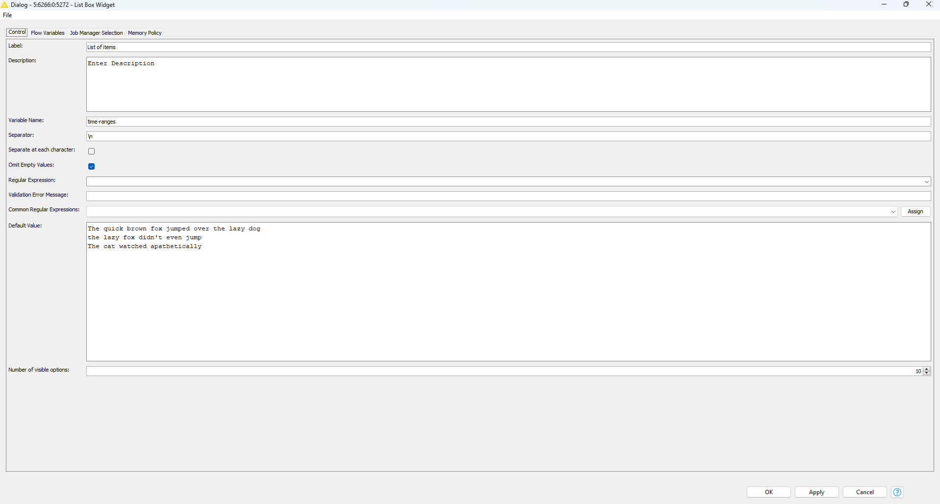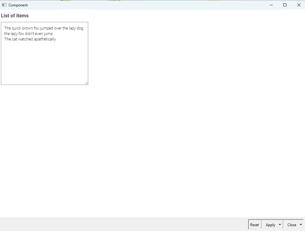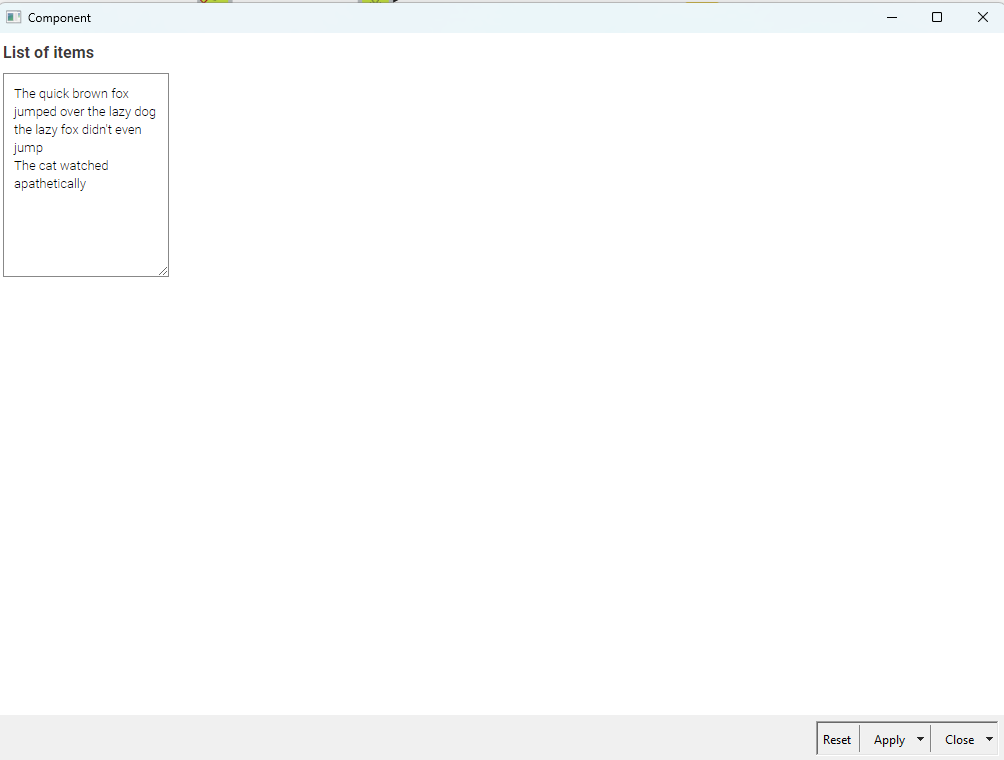 Does anyone know how to change the width of the area where you type in multi-line strings in the list Box Widget. I want the width to match the width of the longest line of default text. You can change the number of “Number of Visible options” to change the height of the box when you open the composite view, but the width always stays the same unless you manually drag the box to make it bigger. putting the list box widget and Adjusting the “composite view Layout” width and heigth does not seem to impact the text box dimensions at all…any suggestions?