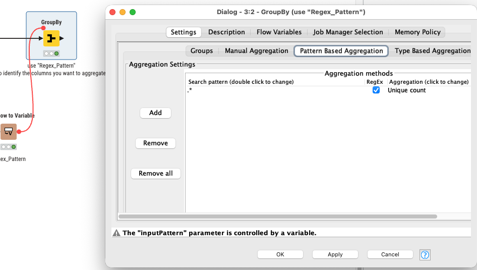 And finally you enter the pattern into the Group By node to get the result.