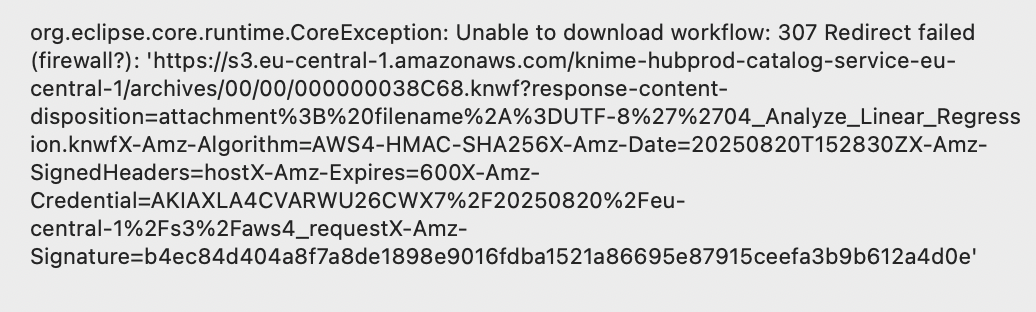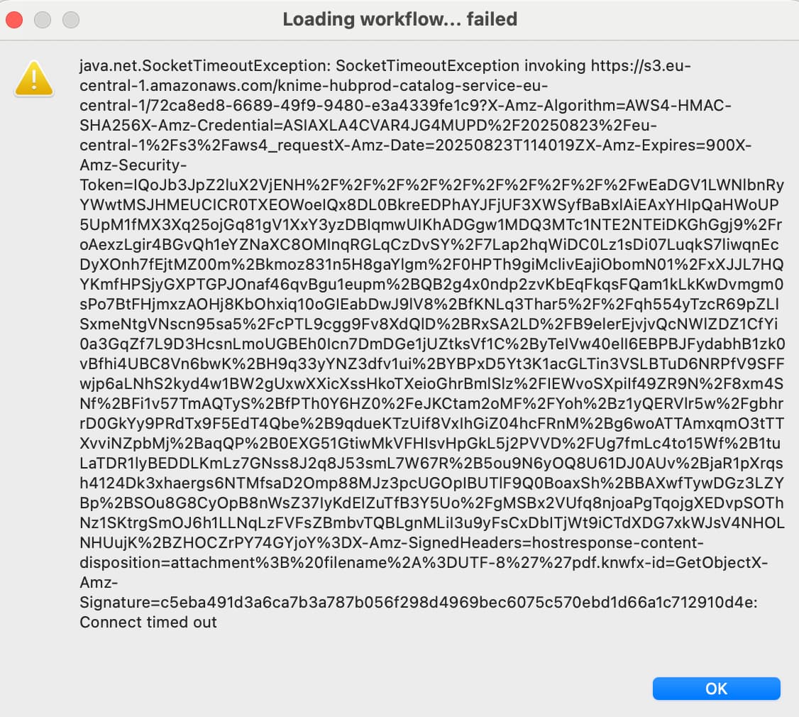 I uploaded my workflow to the air with windows system laptop, while I cannot download my workflow with my Mac. There are something wrong with s3.eu-central-1.amazonaws.com connecting to the Mac machine, although I use VPN or change the DNS.