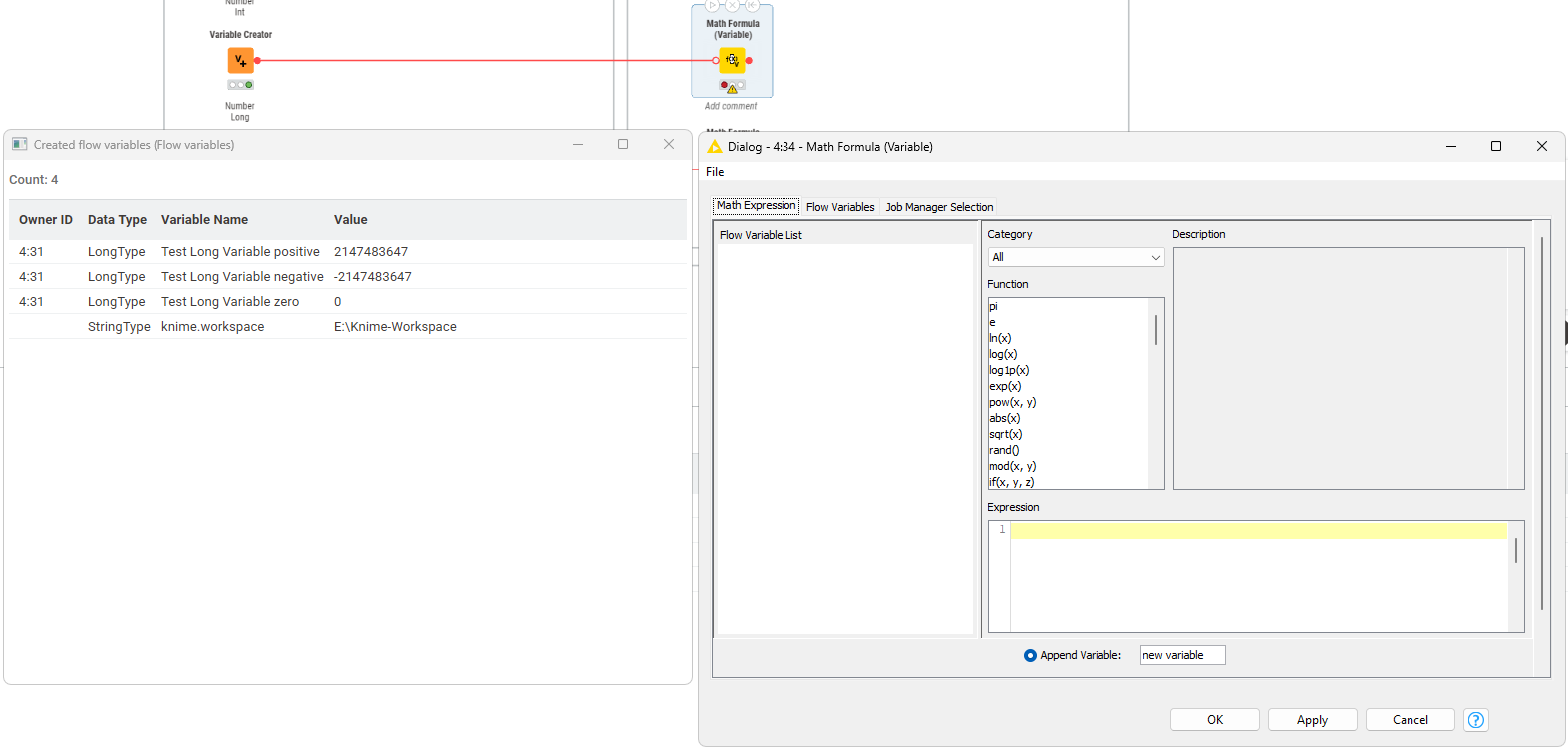 the Math Formula (Variable) node is not recognizing varaibles of the corresponding type.