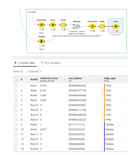 I have created a workflow for network analysis to identify collution between bidders. I want to colour the vertices based on their component (group they belong). I understand that somehow, I should extract component ID for each vertex and use it in color node. But I am not finding a node / functionality to extract component ID from the created network. Any advice on how to extract the most connected bidder (ID) or most repeatedly used mobile / email / pan is also welcome.