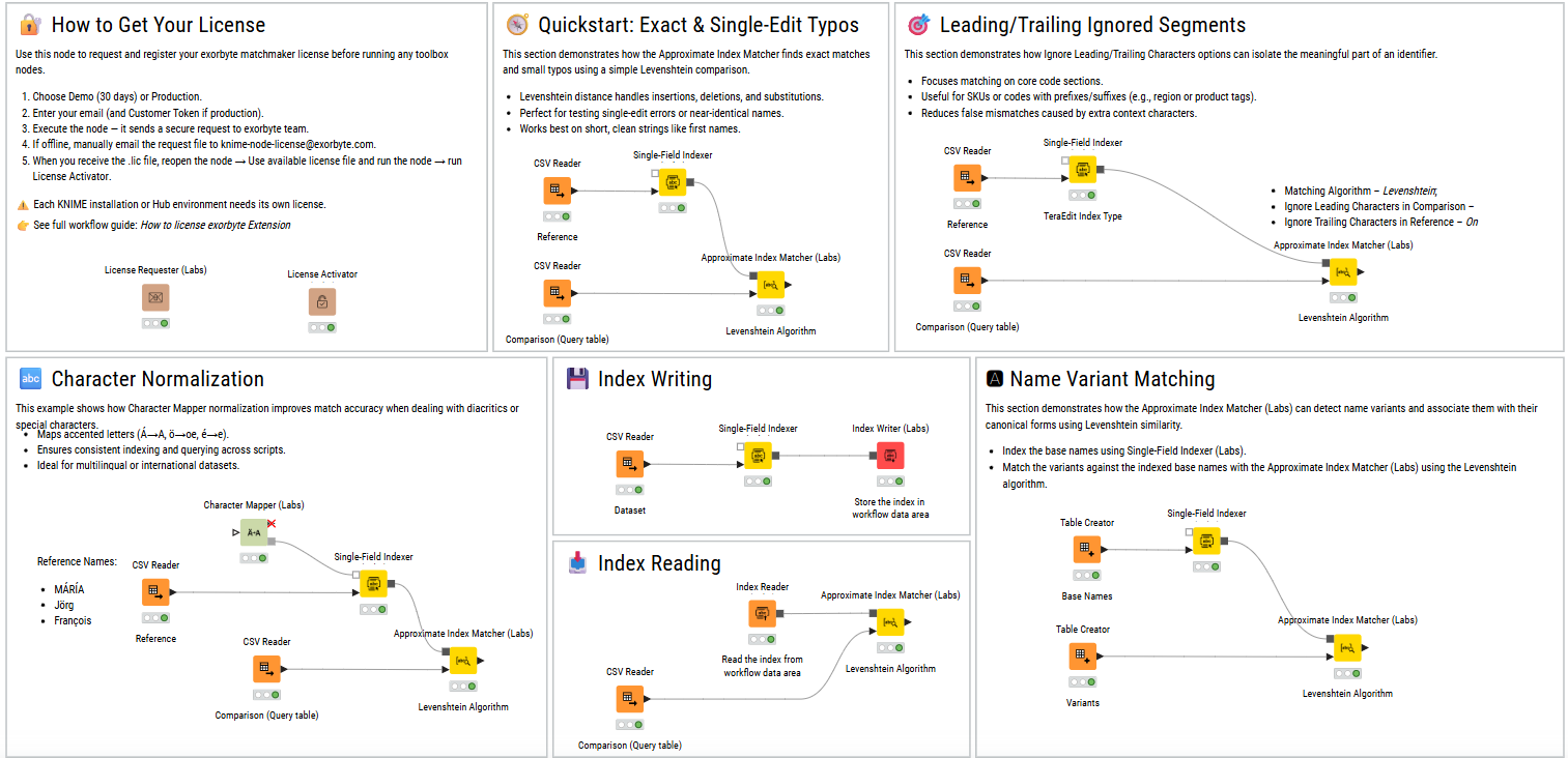 These nodes allow you to index, normalize, and match text data with high precision.