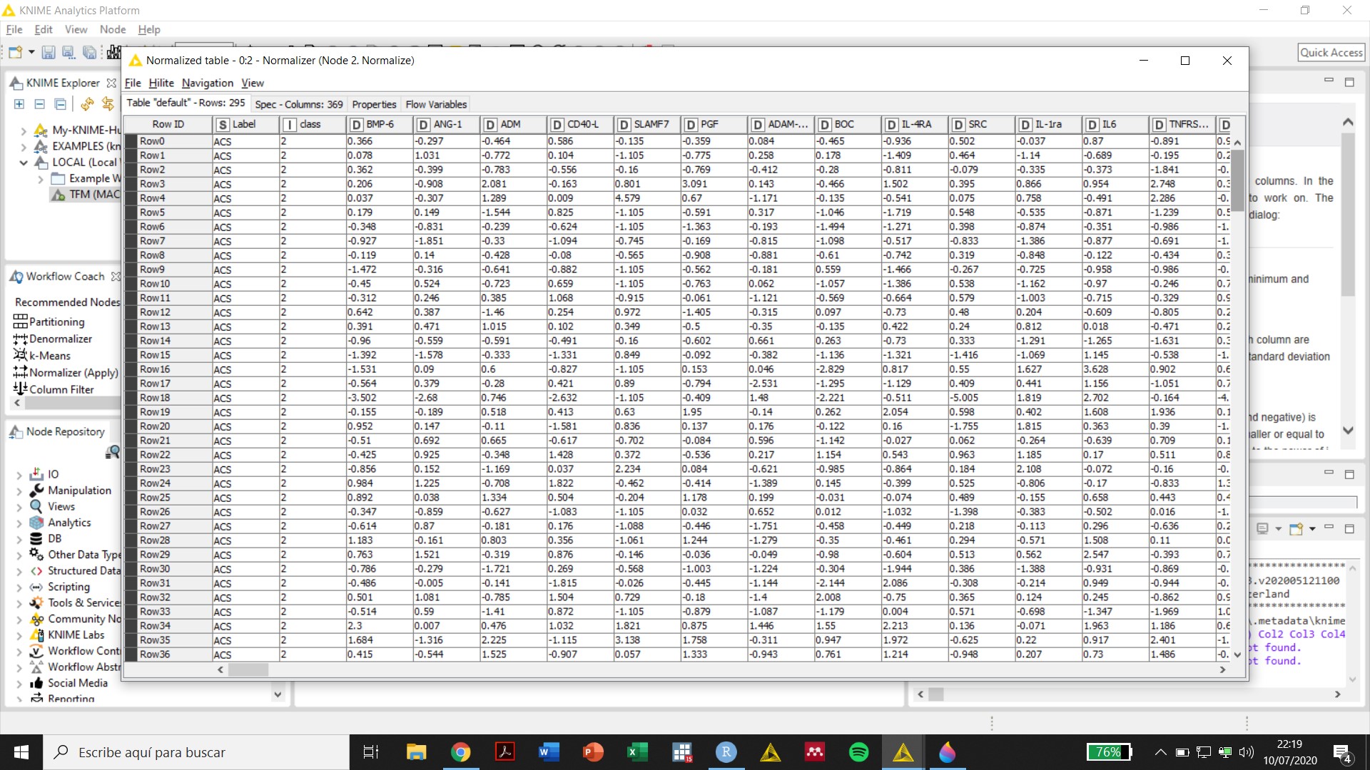 I am new to KNIME. I have imported an excel file with no problems and I want to normalize the predictors (n = 367) using the Normalizer node, but a warning signs appears in the node and no variables can be selected. Can you please provide some help?