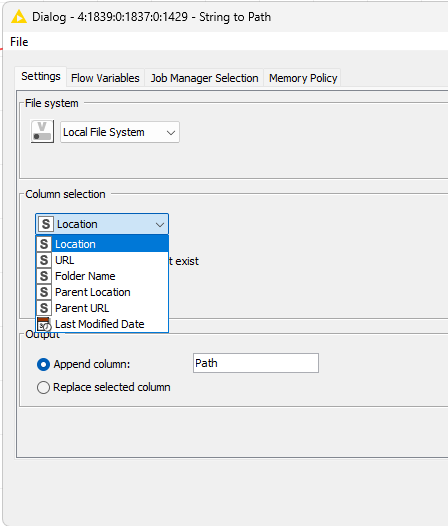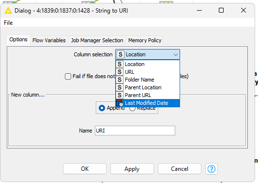 the String to URI node suggests incompatible column types. Only providing compatible ones would improve UX.
