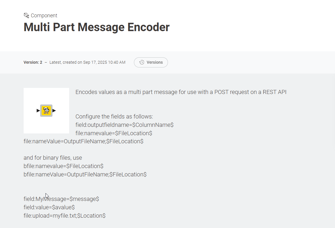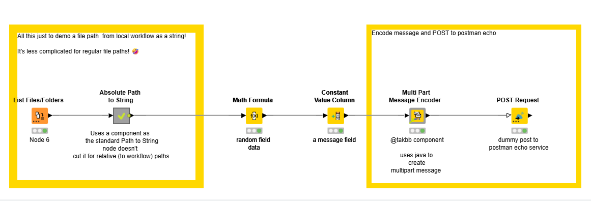 I could use a python script to send the file via POST call, however the problem is that Restfull service I’m working with requires token based authentication and python script node doesn’t support credentials variable. It is essential for me to use credential node as the workflow will be used by others and they might not supposed to see the Token as raw string.