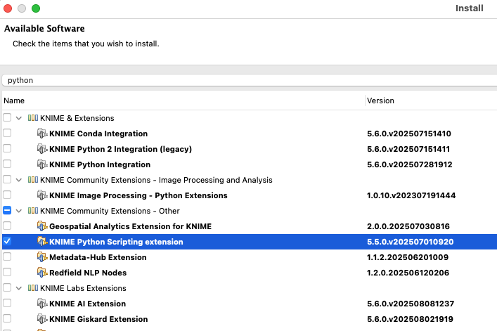 I have installed python integration, then I opened file->preferences->knime->searched “Python” → not available. Why?