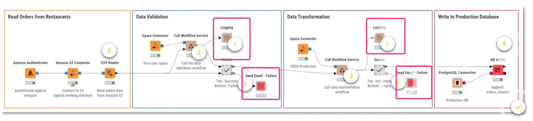 I noticed “Logging” and “Send Email - Failure” components and had a few questions: