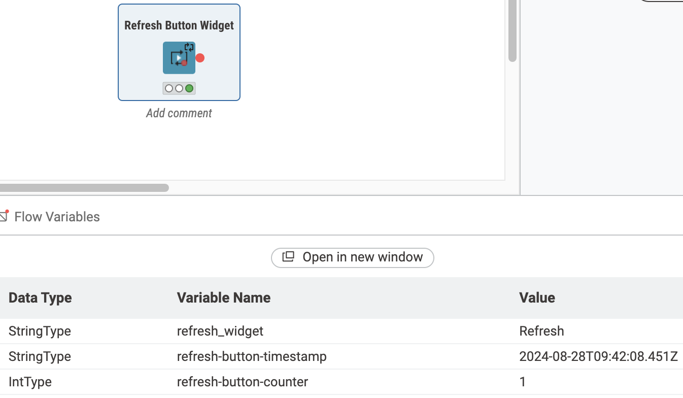 It would also be very useful if you could include the information about when a refresh button was pressed in a output variable. This would make it very easy to define different situations with CASE nodes if you have multiple refresh button widgets in the workflow in a component.